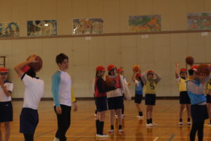 生徒1人1人とても元気があって時には笑顔があり時には真剣な眼差しで積極的に質問をしてくれて、最後にはふれあいバスケを行い、皆さんと楽しく交流する事ができました!